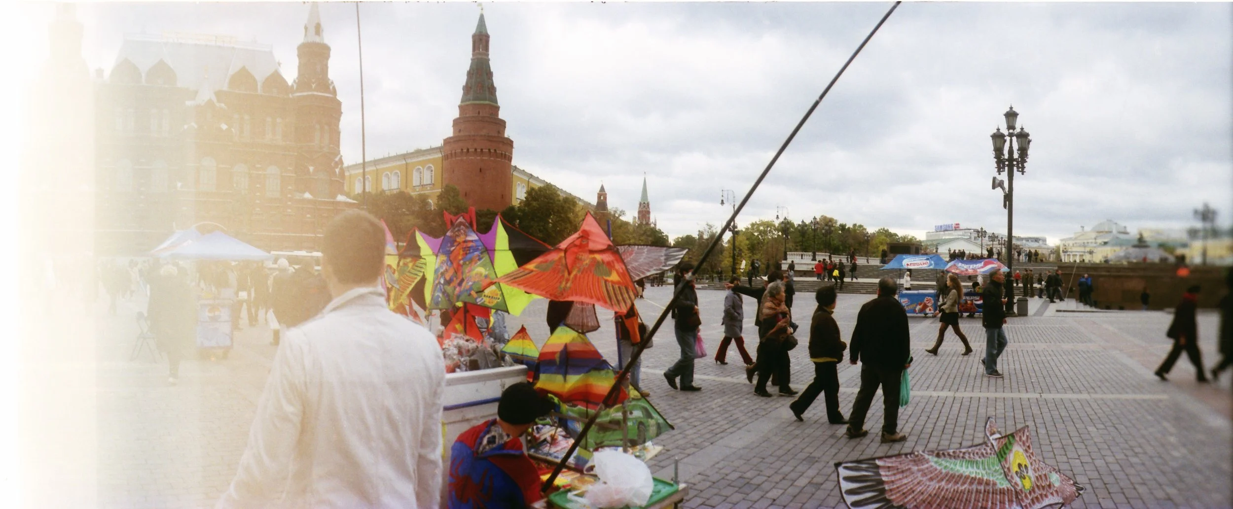 Moscow, as it stands today, feels like a distant dream. Each photograph in this collection was captured in the year 2011 through the lens of a Russian Horizon camera. While the lens creates a 180-degree panorama, it immediately becomes evident that the duration of the photograph is different, both in the moment of its creation and in its subsequent viewing.